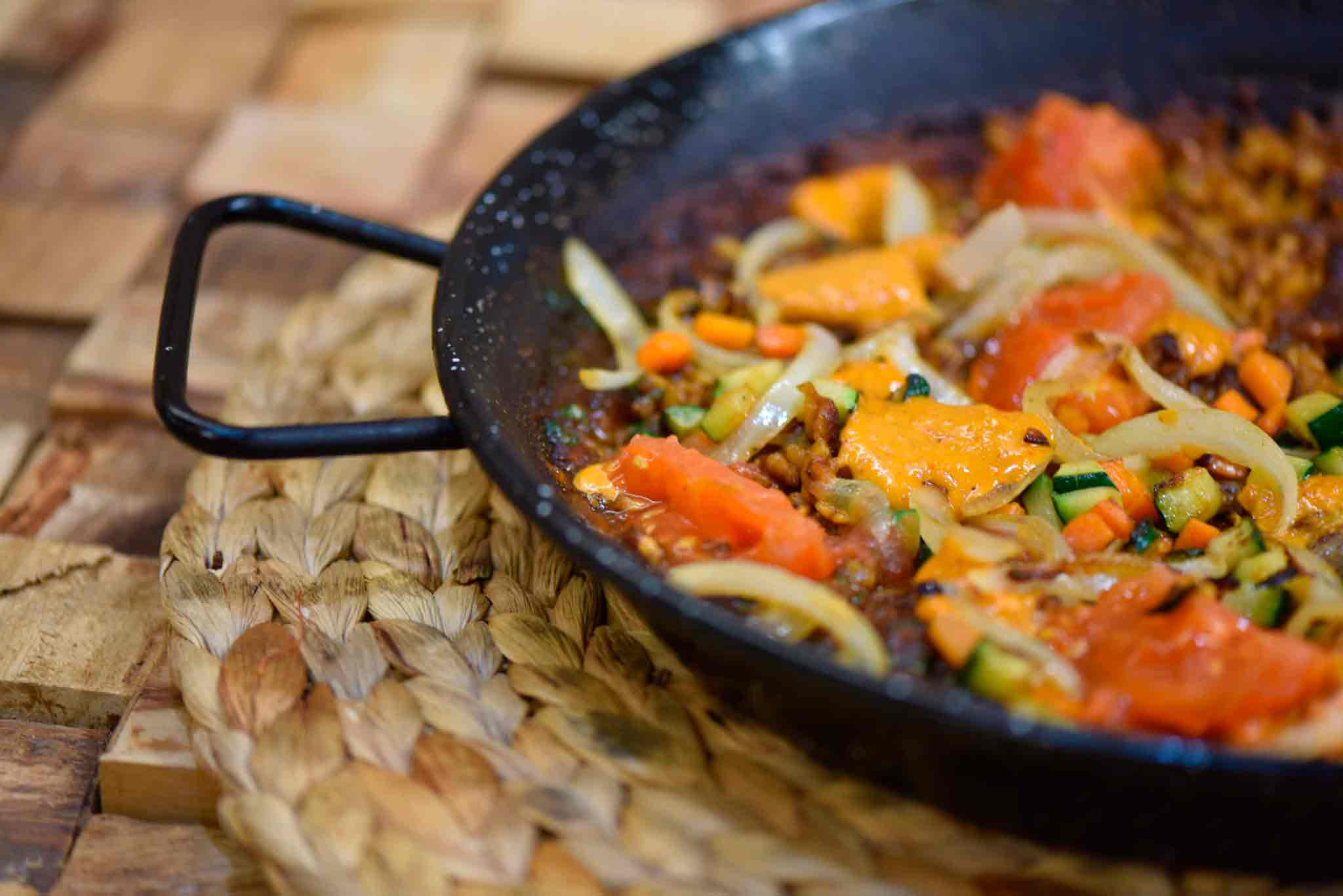 Descubre la frescura y la vitalidad en cada bocado con nuestro Arroz de Verduras con Romesco. Una sinfonía de colores y sabores se despliega en este plato, donde una selección cuidadosa de verduras de temporada se combina con el toque vibrante del romesco. El arroz, cocido a la perfección, actúa como lienzo para resaltar la diversidad de texturas y aromas que ofrecen las verduras frescas. El romesco, con su mezcla de frutos secos y pimientos, añade una capa adicional de complejidad y exquisitez. Una opción vegetariana que celebra la riqueza del huerto en cada porción, este plato invita a disfrutar de la cocina saludable sin comprometer el sabor.